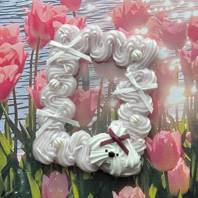 【製品仕様】 硬質ケース 外寸:10.0×13.9cm 内寸:9.4×13.6cm ※縦入れタイプ、B7サイズ ※ハンドメイド商品になりますので、小さな傷等ご理解いただける方のみご購入お願い致します。 ※ホイップデコはシリコンシーラントで作っています。匂いに敏感な方はご注意ください。 ※丁寧に梱包しておりますが、配送後パーツが取れていた場合は、市販の接着剤等で付け直しをお願いします。 #hellosooron